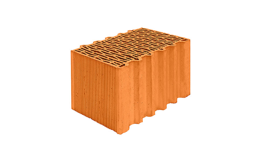 Блок керамический поризованный Porotherm 38 Thermo используется в строительстве несущих наружных и внутренних однослойных стен. На 25% меньше потери тепла благодаря специальной конструкции пустот. Толщина стены составит 380 мм. Блоки соединяются между собой структурой «паз-гребень», при этом вертикальный шов не заполняется кладочным раствором. Не требует дополнительной теплоизоляции.